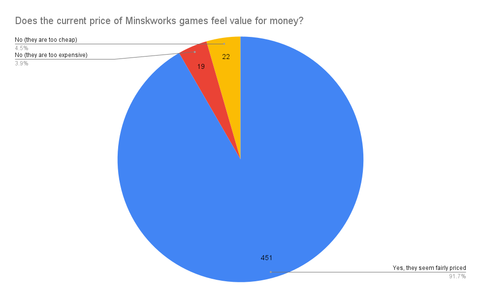 At the start of the December, we opened a survey to the community asking you to help us determine what MinskWorks should work on next. The survey was comprised of 10 questions. We received 492 unique responses during the 20 day period it was active.