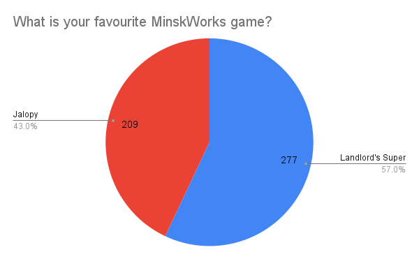 a creative mode for landlord super or a prebuilt house so you can do interior decorating, New game and DLC for Landlords, which I appreciate may be impossible, What you want to work on, all of the above, A spiritual successor to Jalopy – where you ride a motorbike instead :), add ability to drive a car and buy a car from the scrapper or something, and the ability to drive new places would be cool (wouldn’t have to be anything big like) just a new city or smth, A new game similar to Jalopy, but open-world, Jalopy on Xbox, Anything that allows for narrative expansion, whether that means another Jalopy-like, narrative DLC for LLS or a new game., A pub simulator, I have a design document created for when I was planning on developing one in EU4, Dlc for landlord super or a new game, continue to improve landlord super, Foxus on one ghame and fix/finish it. landlord isnt even playable., All of the above, God console port, and jalopy 2.0h, Just keep up the good work bruv, I miss Jalopy but LS is fun enough to justify still following ya, I have no strong prefference all sound fun!, Successor to jalopy OR a new game :D, Jalopy + Landlord’s Super = gasm, Jalopy finished and working properly, New game with original mechanics, I’d love more content for Landlord’s Super if it’s possible ofc but if it’s not because of budgetary reasons I’d like a spiritual successor to jalopy, Spiritual successor to jalopy, DLC for landlord super, DLC for Landlord’s Super and just more update for it not just dlcs, A new game with a new gameplay, style and passion would be awesome, but a spiritual successor to Jalopy would be amazing too., The ability to build a council estate, More content for base game Landlord Super (I assume DLC would have to be paid for), Landlord’s Super and New game, Something like Open Sewer maybe. More story, post-soviet athmosphere, dark and dirty. Or a strategy game like Empire Earth (in your hands it would be high-quality art piece)…, I would welcome more content for Landlord’s Super. A spiritual successor to Jalopy would be awesome if it featured multiple ways to travel, inspired by 80 days around the world., Landlord’s Super, Even if you tell that there are no moreupdates for Jalopy: This game has a holy fucking ton of potential, like for real… I have a lot of ideas, just write me a mail, Spiritual Successor to Jalopy or update Jalopy and make it the best it can be, Mac port of Landlord’s Super.